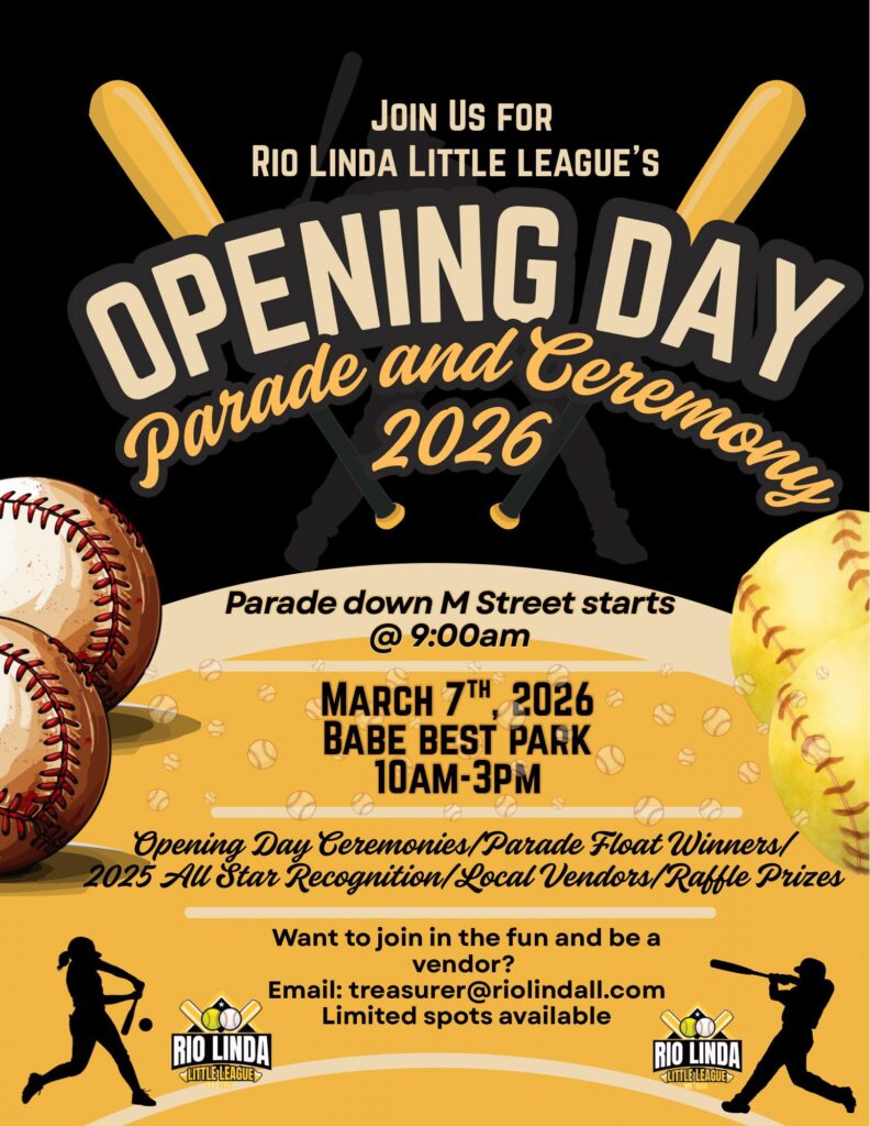 The crack of the bat and the cheer of the crowd are returning to Rio Linda! TOMORROW, Saturday, March 7th, our community comes together to celebrate the Rio Linda Little League 2026 Opening Day Parade and Ceremony. It’s a day dedicated to our young athletes, local families, and the small-town spirit that makes Rio Linda special.