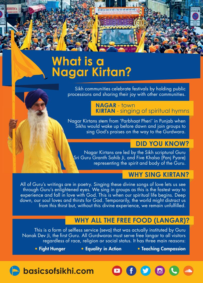 Following the speakers, the Main Parade (Nagar Kirtan) will begin at 11:00 AM, featuring colorful floats, traditional music, and martial arts demonstrations. The event is expected to conclude around 5:00 PM.
