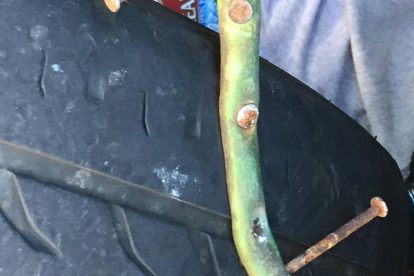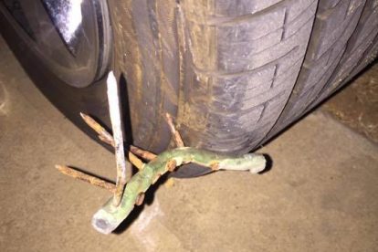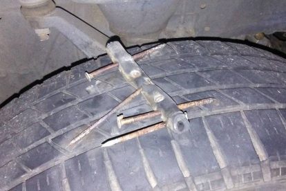 The dangerous and damaging devices have caused at least 6 flat tires since April of this year. Another was reported in June, and more in August. They present as pieces of rubber hose or garden hose with several rusty nails pushed through at different angles, as to make sure one or more are pointing upwards when laid out.