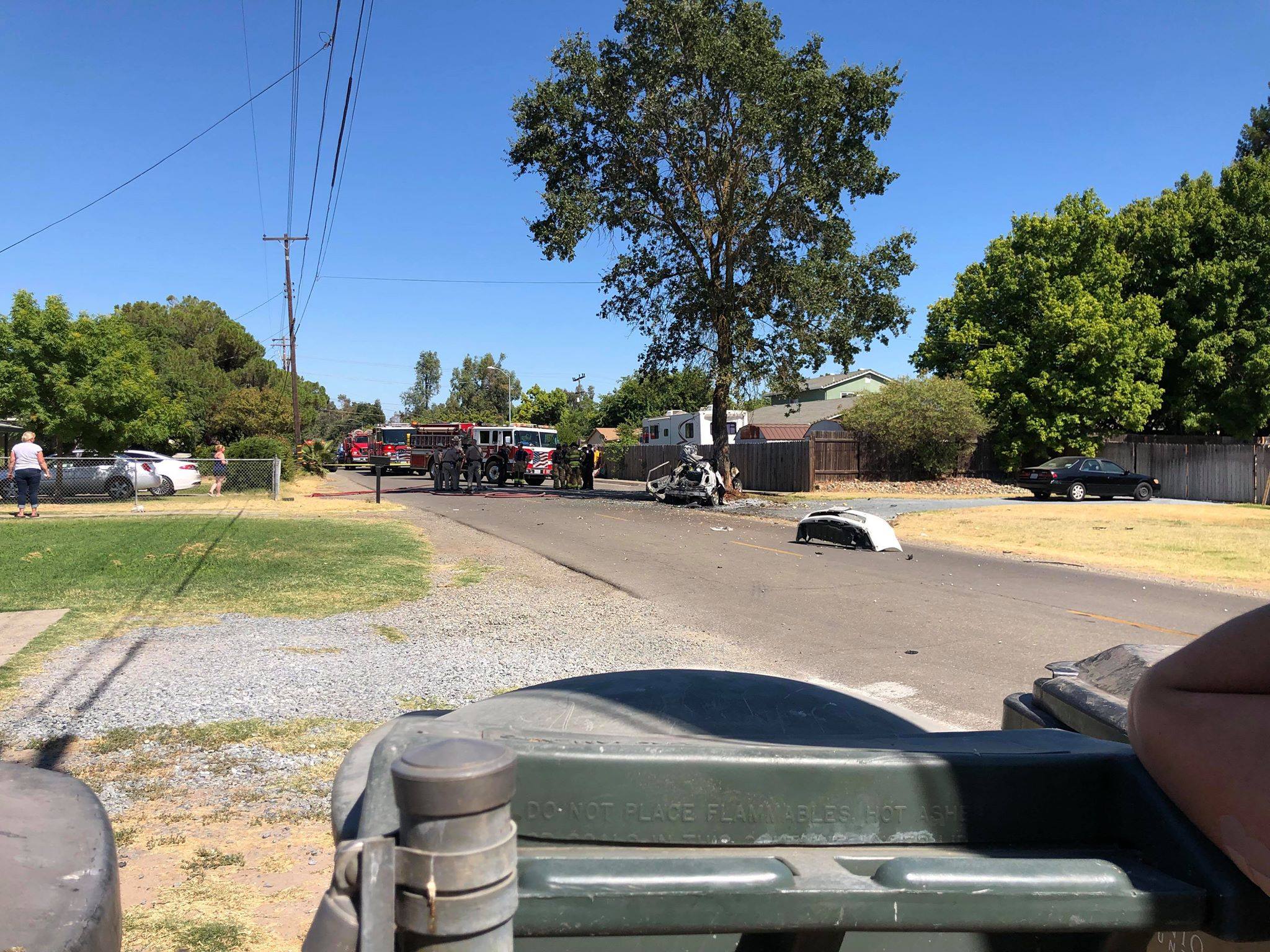 According to the California Highway Patrol, On July 26, 2019 at approximately 3:12 PM the CHP received reports of a solo vehicle vs. tree traffic collision with the vehicle on fire at U Street and Maldive Street.
